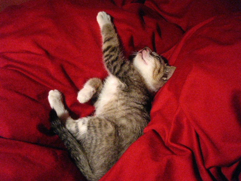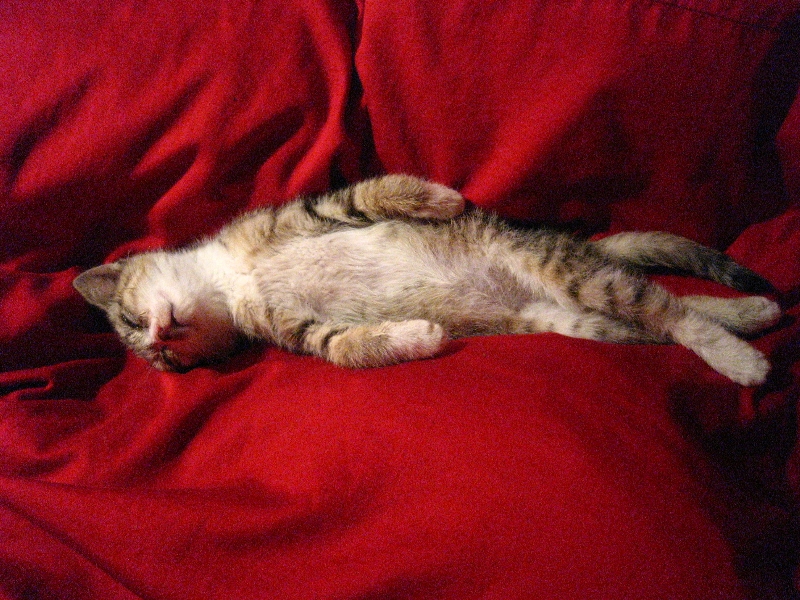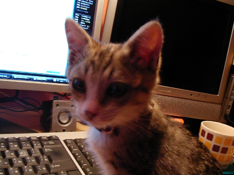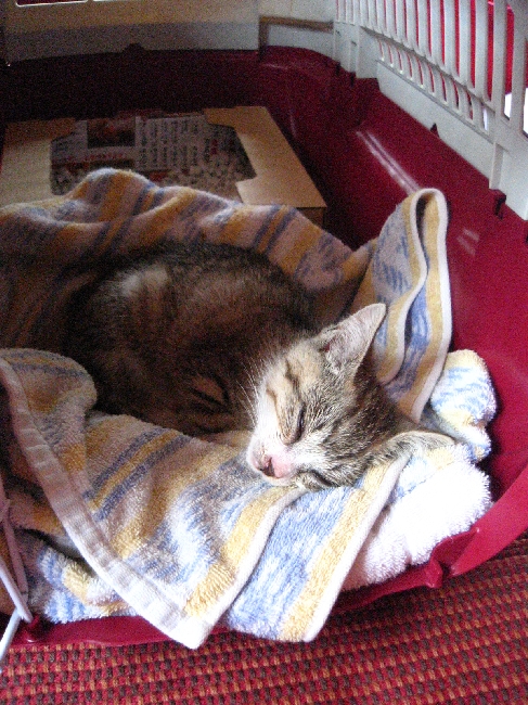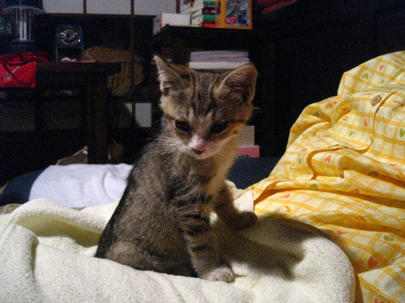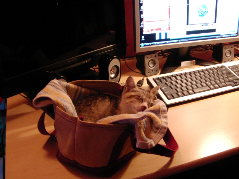 私の編んだモヘアのマフラーを寝床に提供 | |